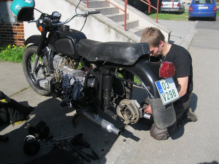 Byla sobota, šest hodin ráno, vstávám, posléze dolaďuji drobné nedostatky na dněprovi a razím 20km do Soběslavi, na veteránskou testaci. Největší chyba co jsem moch udělat, motorku dva dni předem umejt a nedojet jí projet. na testaci přijíždím již s pochybnou funkcí spojky. Motorka kontrolou v pohodě prošla. Odjíždíme tedy podívat se do vzdálenější vsi na Offroad závody. po pár stech metrech to přijde, už docela silou vymáčknu spojku že přeřadím, v tom hvízdne v převodovce a spojka zůstane natrvalo vystavená. Takže na parkovišti vyndavám z dněpra převodovku, půjčuji si kladivo, vymlátím z převodovky orezlou zadřenou vypínací tyčku, u ochotného pána v protějším domku obrušuji na brusce, a hurá zkládat