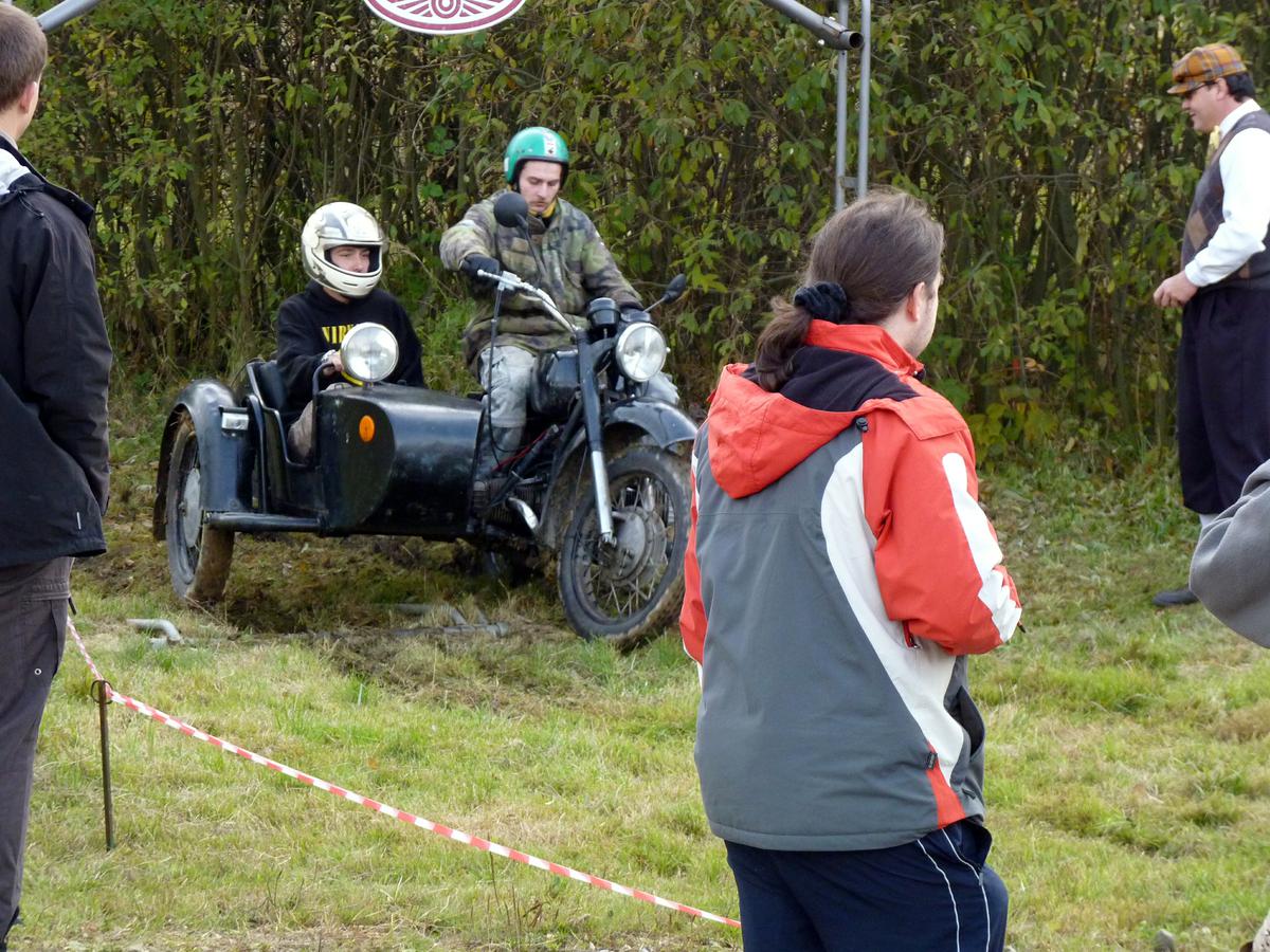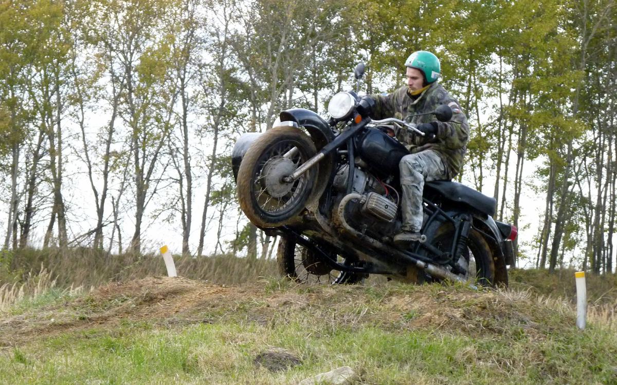 Moje oblíbená disciplína je spíš taková "motogymnastika". Zatím teda dělám různý hovadiny na solo motorce, ale teď mě tak napadá, jestli by se nedala udělat i opičí dráha pro sajdu