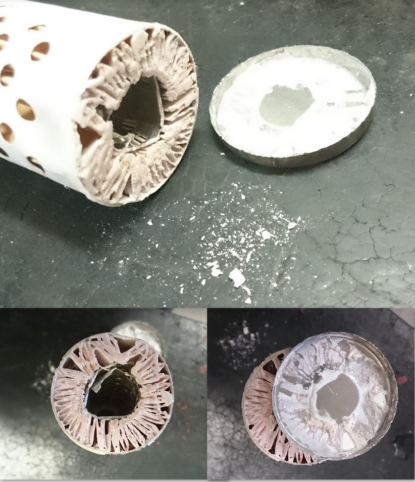 Z filtru se vysypalo něco bílého. Bylo to tvrdé a drolivé.