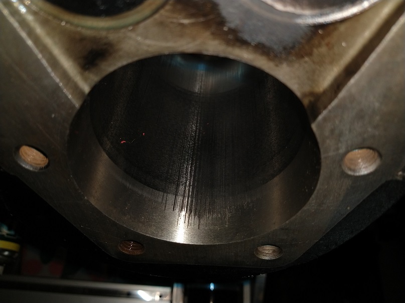 Dělal jsem kompletní GO motoru. Protože trochu foukalo pod hlavou, tak jsem jí sundal že podmažu těsnění. A objevil jsem rýhy na spodní straně pravého válce. Motor najel asi 2Km, musel tam zůstat nějaký písek z pískování.