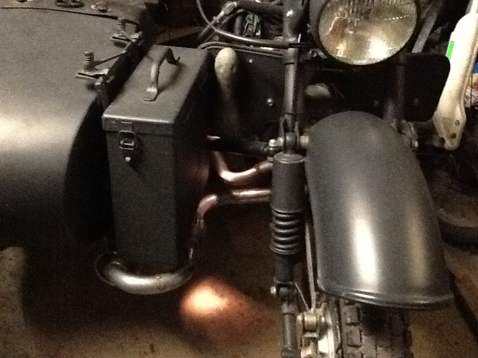 kraval to nedělá má to hluboký zvuk,když tak to nastavím a dám ještě jeden tlumič ,původně jsem chtěl výfuky řešit jak ostatní ale ty trubky pod motorem mě překáželi a průchodnost se nezlepší ,tlumič vzadu vadí kolu a na druhý straně při dem.diferáku,takhle je všude dost místa,na zimní motorce jsem to předělal taky