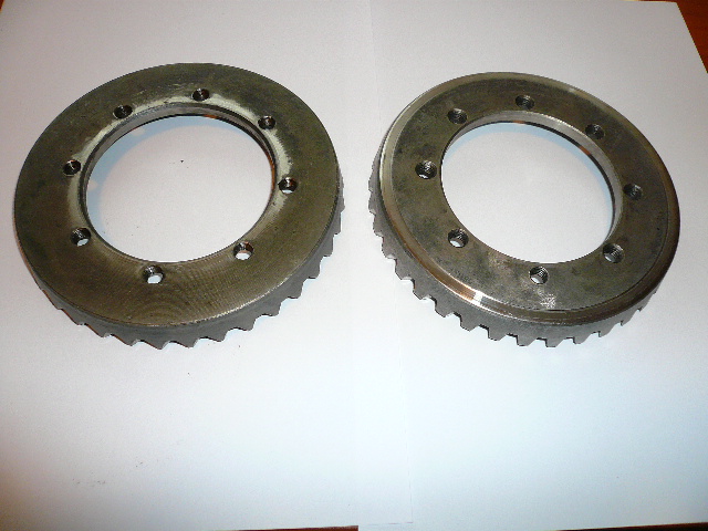 ….jestli vám to pomůže tak jsem přeměřil originál talíř Ural a Dněpr. Měřeno posuvkou tak je rozdíl v celkové výšce talíře (Ural 20mm a Dněpr 19,4mm) je ale fakt že při několikanásobném přeměření u Dměpřího talíře byla tolerance výšky 0.4mm. Dále se Uralí talíř liší zápichem pro ložisko 6mm viz foto jinak jsou všechny míry stejné. Na fotkách od matbikera se mi líbí vysoký počet zubů. U takovéhoto soukolí budou v záběru možná i 3 zuby. Co tedy udělat poměr 57/11 ??????
