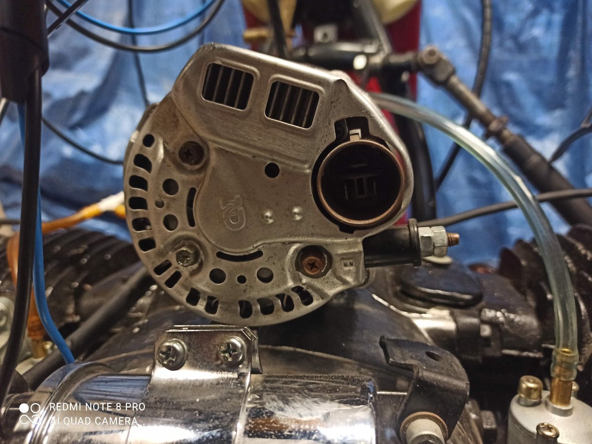 Pochopitelně s 12V alternátorem musíte mít vše 12V. Ten motor měl původně velmi nespolehlivé 6V dynamo.