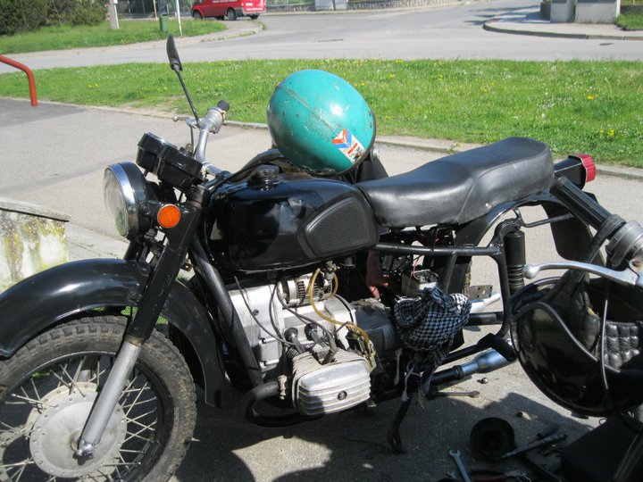 Byla sobota, šest hodin ráno, vstávám, posléze dolaďuji drobné nedostatky na dněprovi a razím 20km do Soběslavi, na veteránskou testaci. Největší chyba co jsem moch udělat, motorku dva dni předem umejt a nedojet jí projet. na testaci přijíždím již s pochybnou funkcí spojky. Motorka kontrolou v pohodě prošla. Odjíždíme tedy podívat se do vzdálenější vsi na Offroad závody. po pár stech metrech to přijde, už docela silou vymáčknu spojku že přeřadím, v tom hvízdne v převodovce a spojka zůstane natrvalo vystavená. Takže na parkovišti vyndavám z dněpra převodovku, půjčuji si kladivo, vymlátím z převodovky orezlou zadřenou vypínací tyčku, u ochotného pána v protějším domku obrušuji na brusce, a hurá zkládat