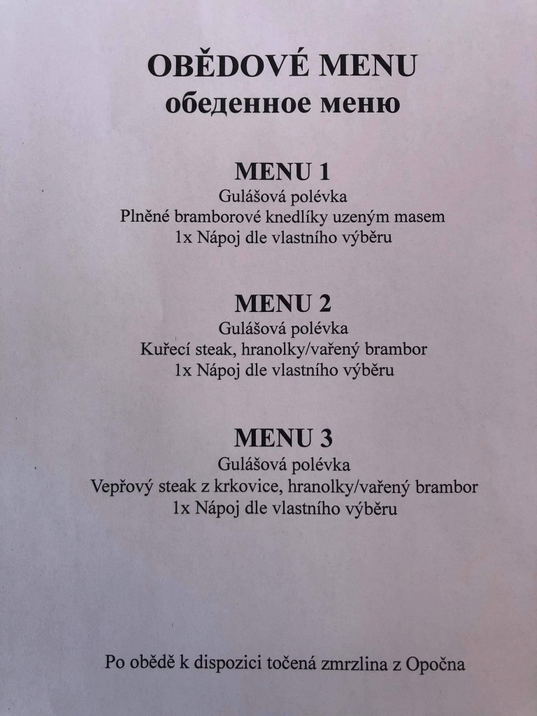 Ahoj všem, vkládám jídelní lístek na sobotní oběd. Jednotná cena za menu je 220 Kč. Platba za menu při registraci.