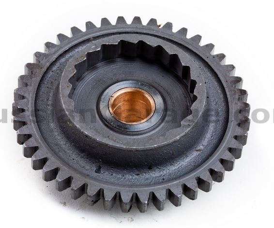 The sound comes from the kickstarter gear (displayed below) and is generated by the small iron assembly on the kick starter shaft (see pic below).