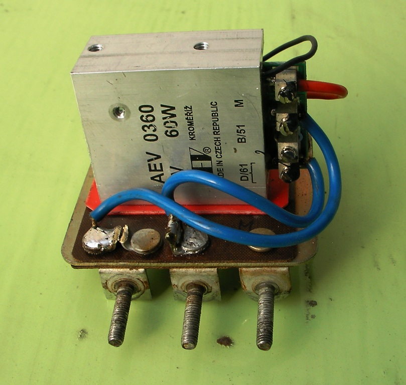 Karlos: Už jsem sem o tom někam psal. Mám přesně to relé AEV pro Jawa 500 OHC. Jeho použití jsem konzultoval přímo s technikem z Kroměříže. Relé mám zabudované v původní krabičce relé RR 302, krásně se tam vejde, Spolupracuje s dlouhým dynamem. Dynamo jsem přebudil na správnou polaritu ukostření. Mechanické problémy jsem snad odladil (vůle v ozubení, usazení kolečka na hřídeli dynama, ložiska dynama, kartáče i komutátor). Provozuju tuhle sestavu už druhým rokem a funguje naprosto spolehlivě. Spotřebiče jsou žárovka 25W vpředu, 5W vzadu, zapalování, ev. brzdovka. Víc nic, mám totiž sólo stroj. Dobíjí to od volnoběhu, o baterce nevím. Najeto přes 2000 km