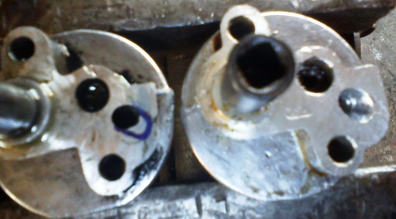 Tak sem teda sundal čerpadlo,levý válec a skoukul jsem to vše jak to vypadá.Čerpadlo šlo strašně těžko a nějak se přidíralo a ještě nějak dobře nesedělo na mazáci kanálek , tak jsem vytahl ze zásob starší překontroloval ,vyčistil a namontoval.Znovu jsem ještě předtím profoukl mazací kanálky a byli všechny 100% průchozí i při opětovném namontováni válce( s kontrolního kanálku šel vzduch).
