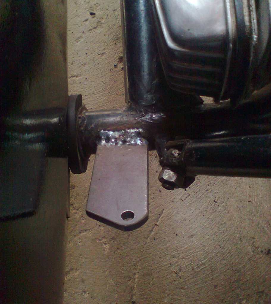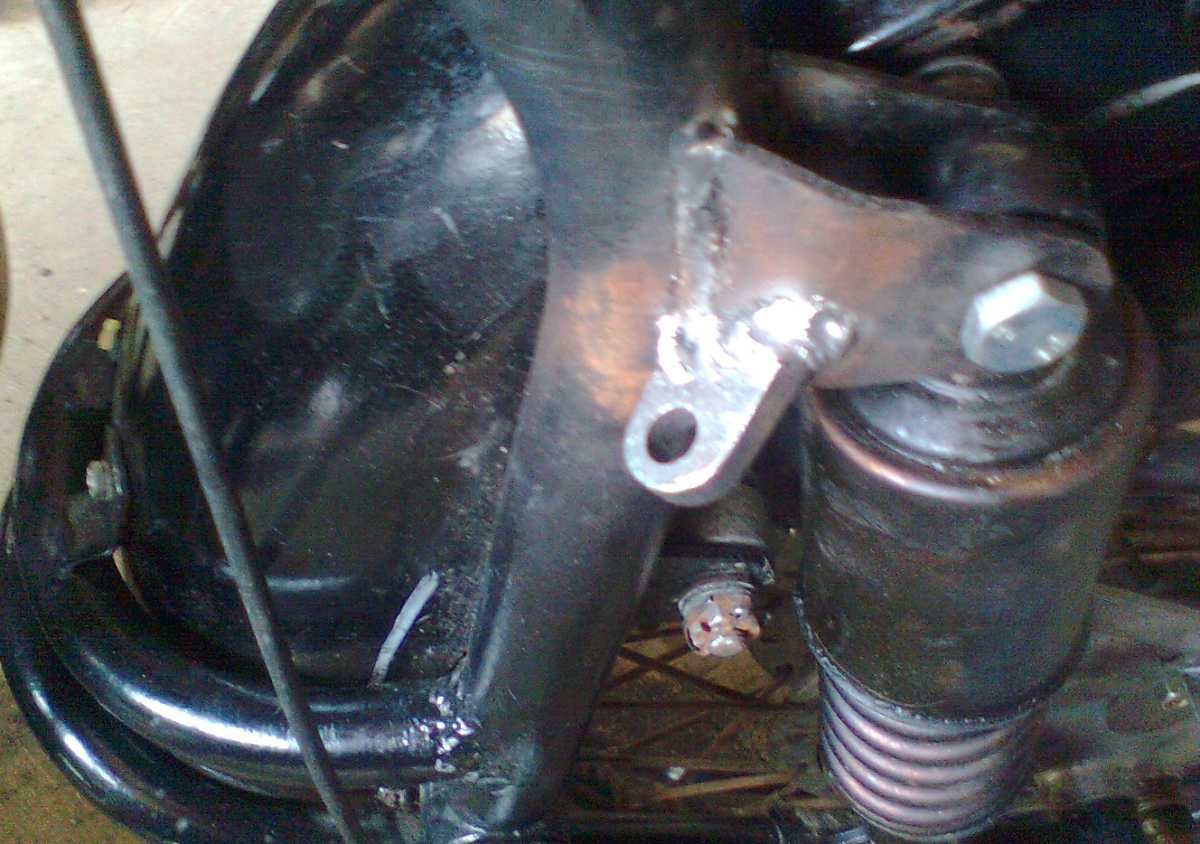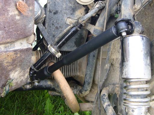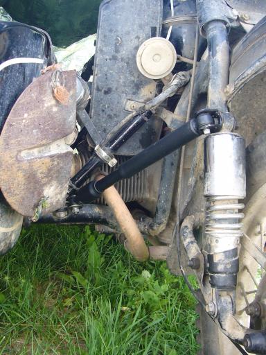 Pro jízdu v terénu optimální, pro jízdu na silnici je tlumení zbytečně silné. Pro silniční sajdy by stačilo tlumič uchytit zespoda do brejlí na poloviční rameno síly. Pokud se ale někam vejde i druhý konec tlumiče.