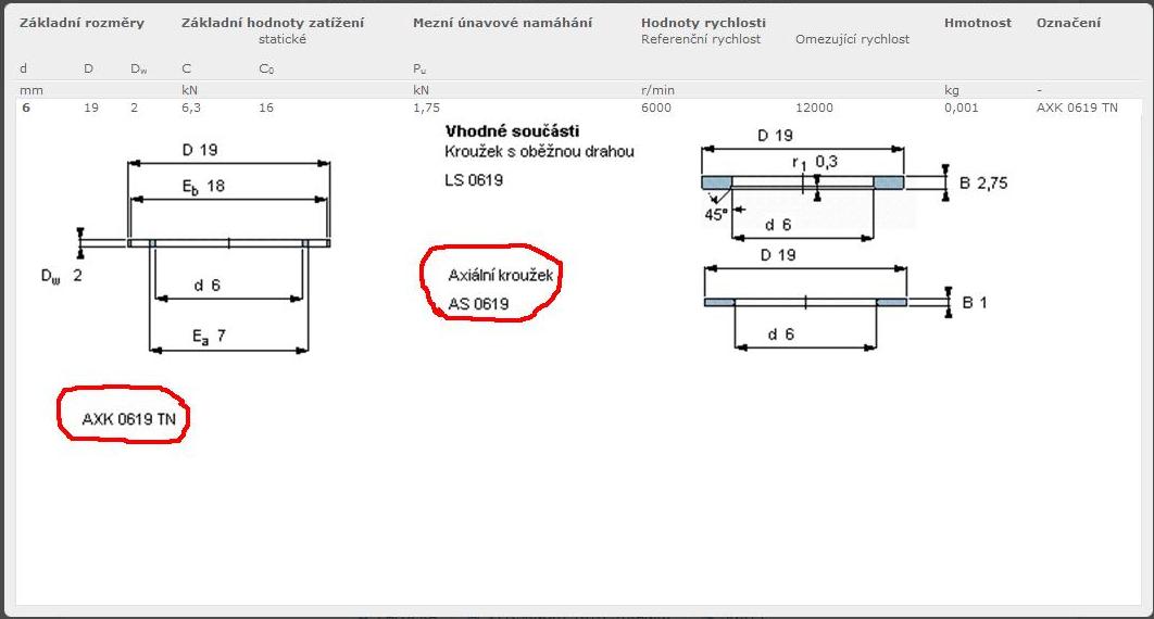 Já používám s úspěchem axiální ložisko od SKF AXK 0619 a k tomu mezi to 2ks 1mm kroužků AS 0619 .
