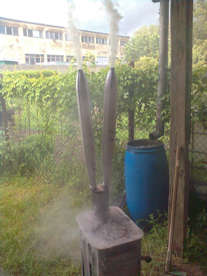 Problem vsech tech vypalovacich zaruvzdornejch barev je vypaleni. Kolena se vypalej provozem, tlumice ne. Kdo nema dostatecne velkou troubu musi improvizovat. Vim ze Michal nema rad vkladani fotek, ale dovolim si sem jednu po dlouhy dobe dat. Kdyby to nekdo chtel takhle zkouset, tak to nefunguje. Jen se naserou sousedi.